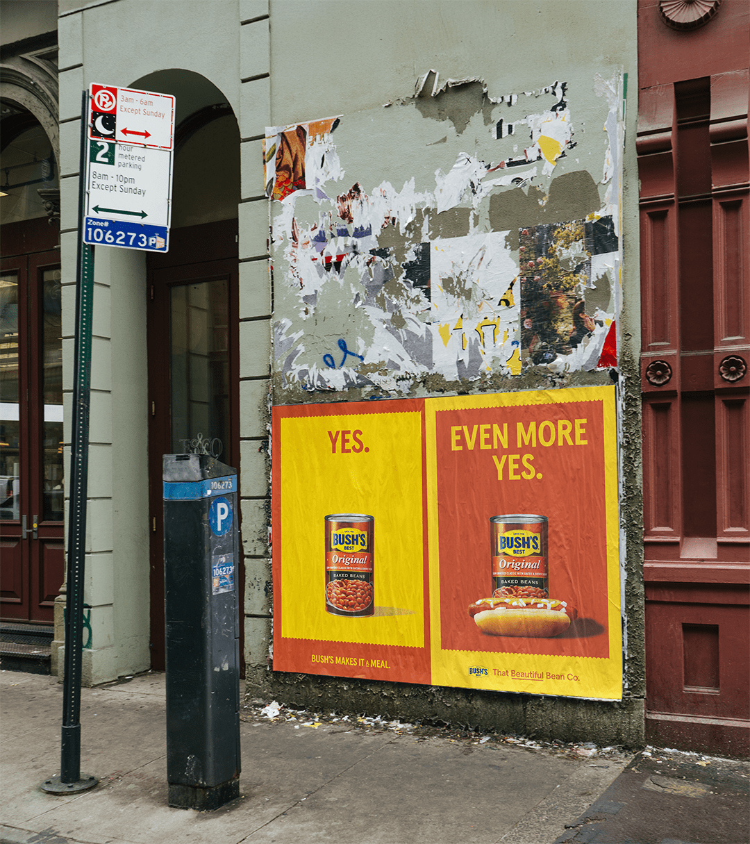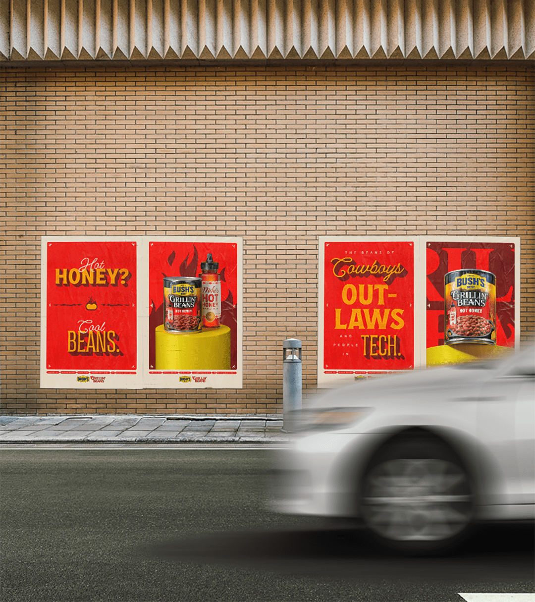 At Austin City Limits, we turned up the volume with Bush’s Grillin’ Beans. This execution brought bold flavor to the forefront, using fun illustrations and playful language to showcase the Hot Honey variety. Inspired by Austin’s hand-painted murals and signs, we treated the OOH like a piece of the city itself. The tone was confident and a little rowdy, positioning Grillin’ Beans as the main act—spicy, soulful, and ready to steal the show.